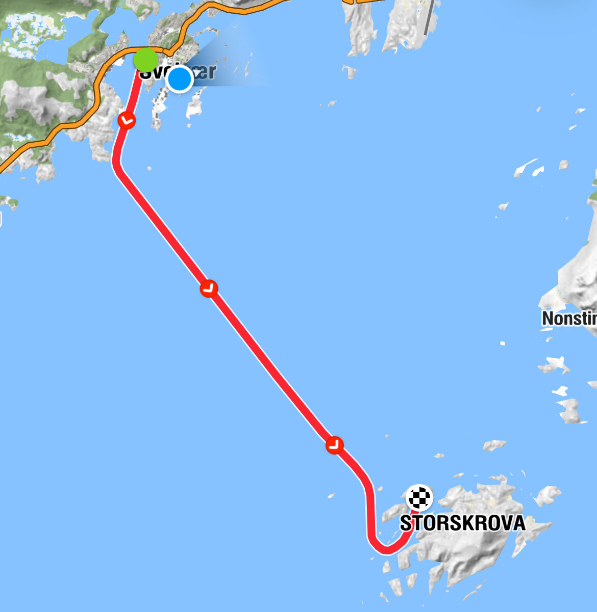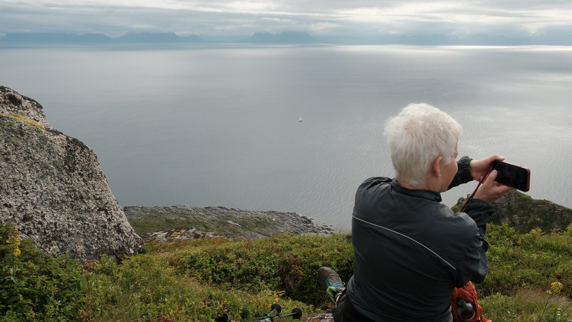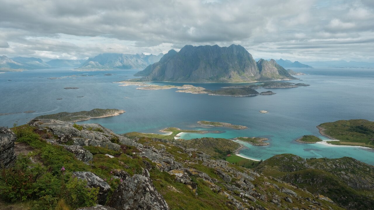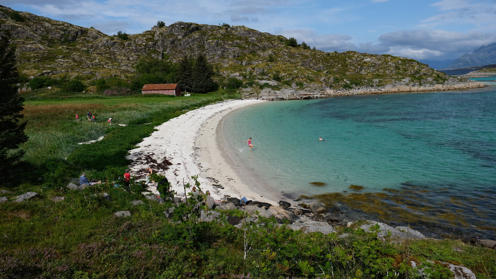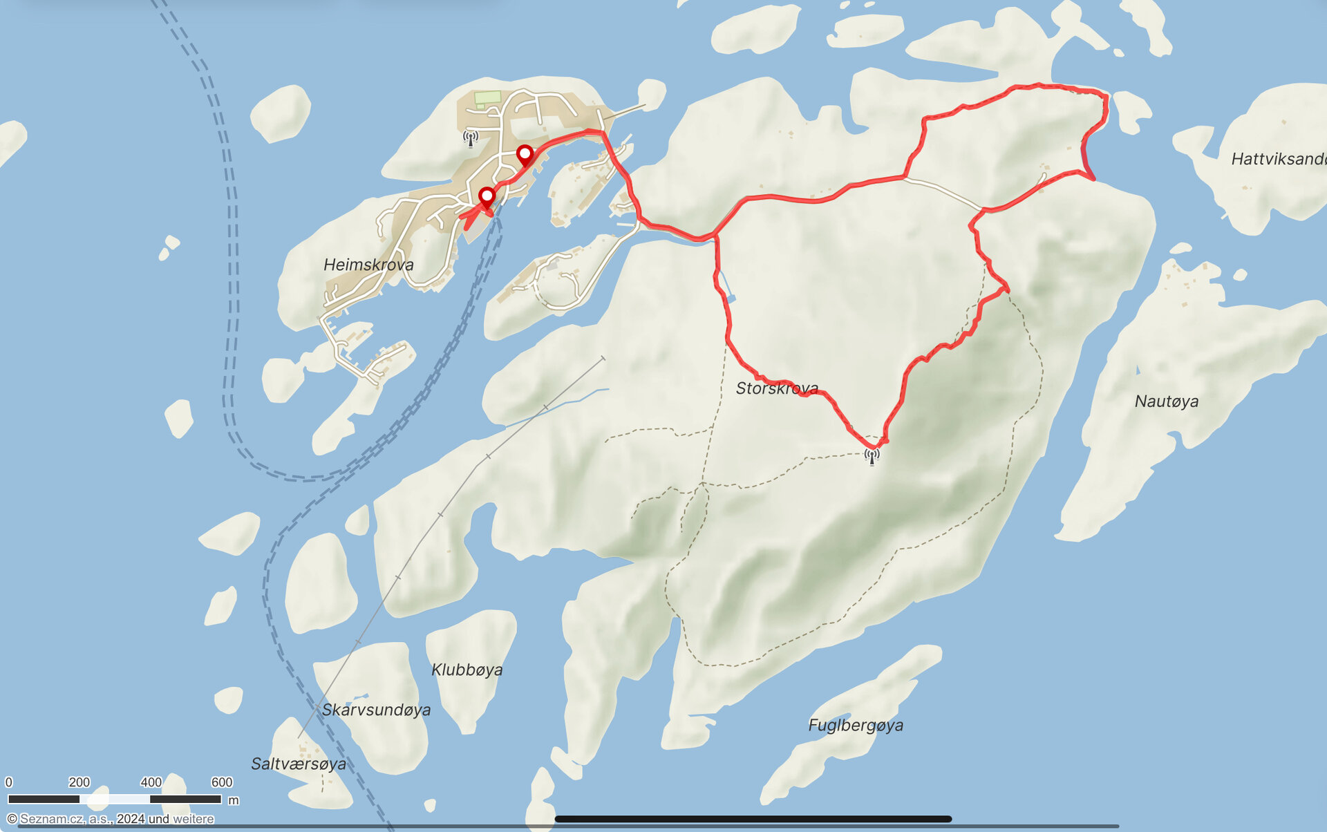 Der Plan für heute hörte sich einfach an: Mit der Fähre von Svolvær rüber zur Insel Skrova (30 min Fahrzeit), dort per Pedes rauf auf den höchsten Punkt, dann auf der anderen Seite wieder runter, ab zu einem der kleine Strände, dort kleine Pause und dann wieder mit der Fähre zurück.