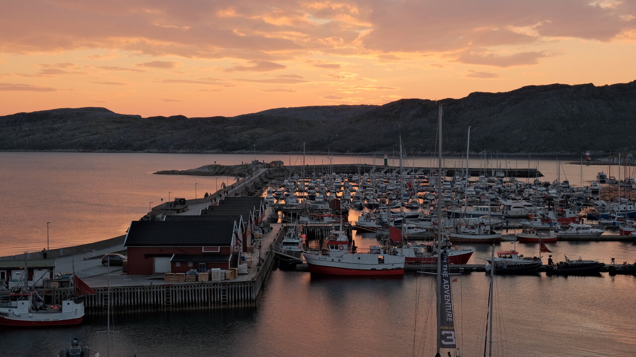 Blick von unserem Hotelzimmer aus auf den Yachthafen. Da wir nun deutlich weiter im Süden sind als am Anfang unserer Reise, geht die Sonne hier tatsächlich bereits wieder unter!