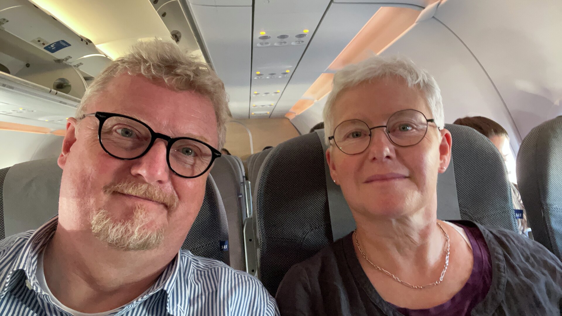 Wir sitzen jetzt zumindest schon mal im Flieger … :-)