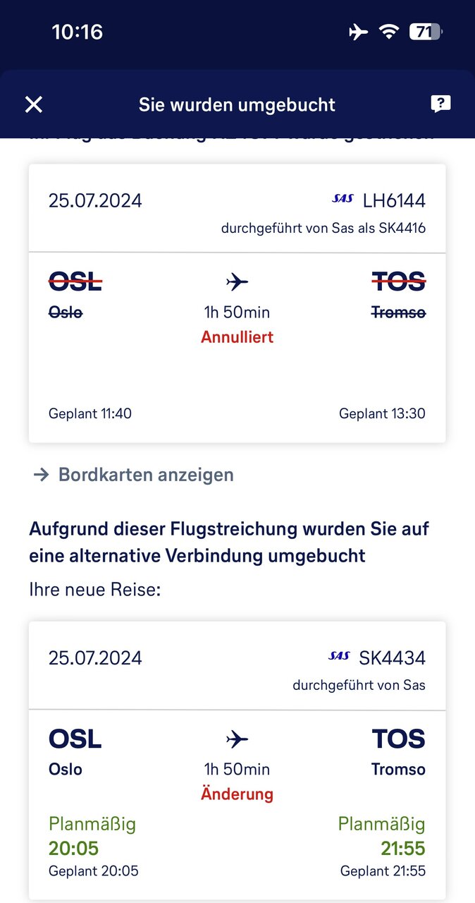 Nach fast 10 Stunden Wartezeit am Flughafen Oslo sitzen wir nun endlich im Flieger nach Tromsø … Puh!