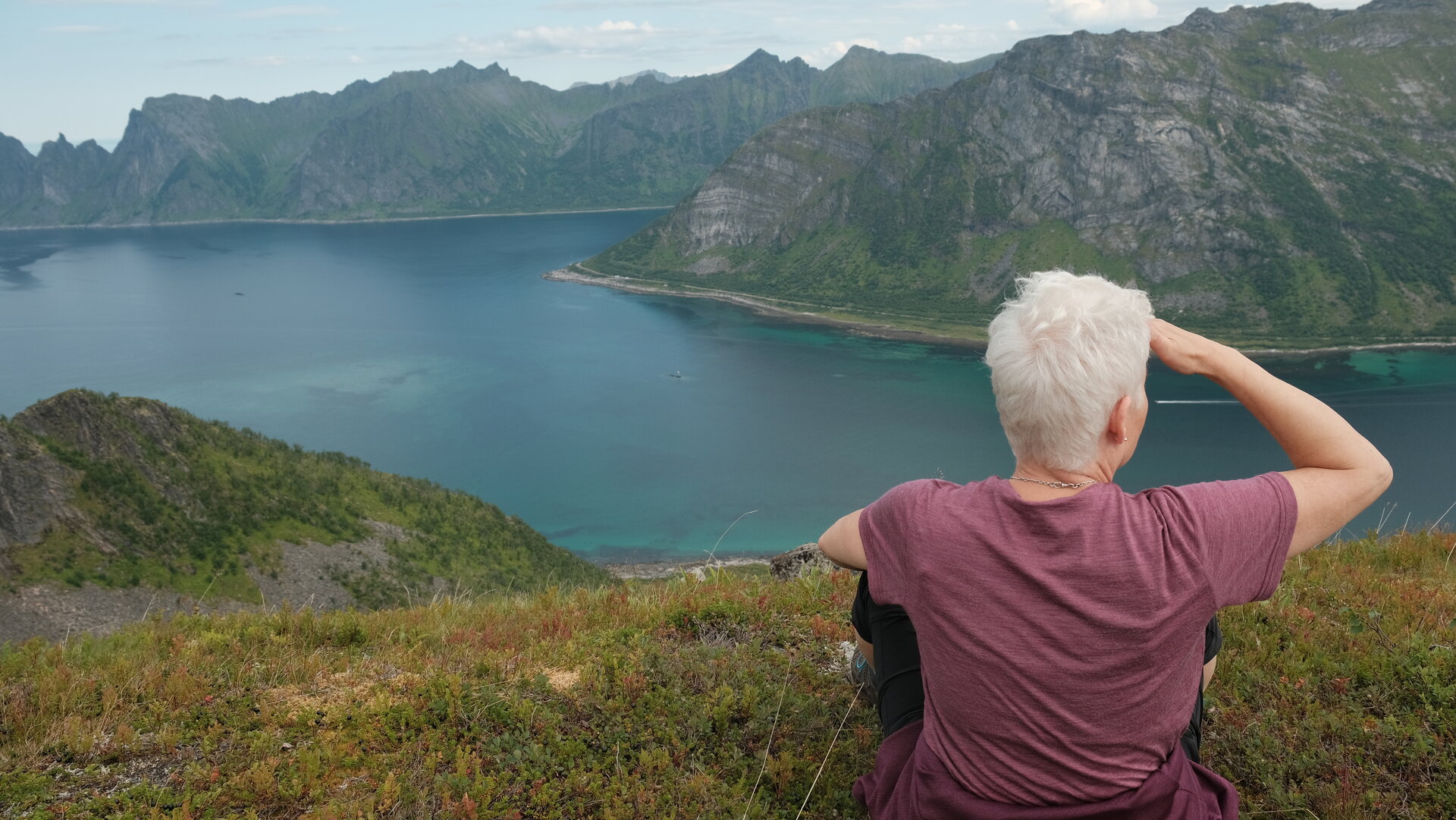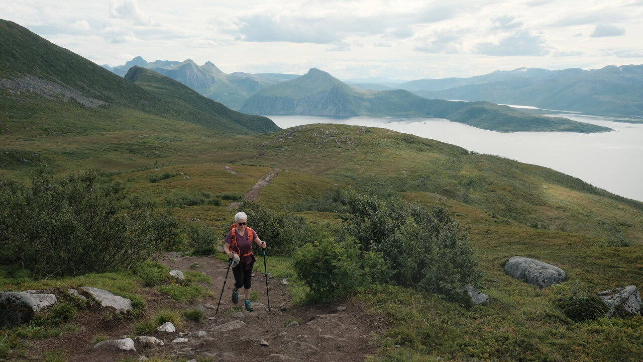 Heute ging es mit Katamaran-Fähre und Kleinbus von Tromsø zur nächsten Station auf der Insel Senja. Es folgten die nächsten 500 Höhenmeter! Aber die Aussichten waren einfach traumhaft und entschädigten für den vergossenen Schweiß!