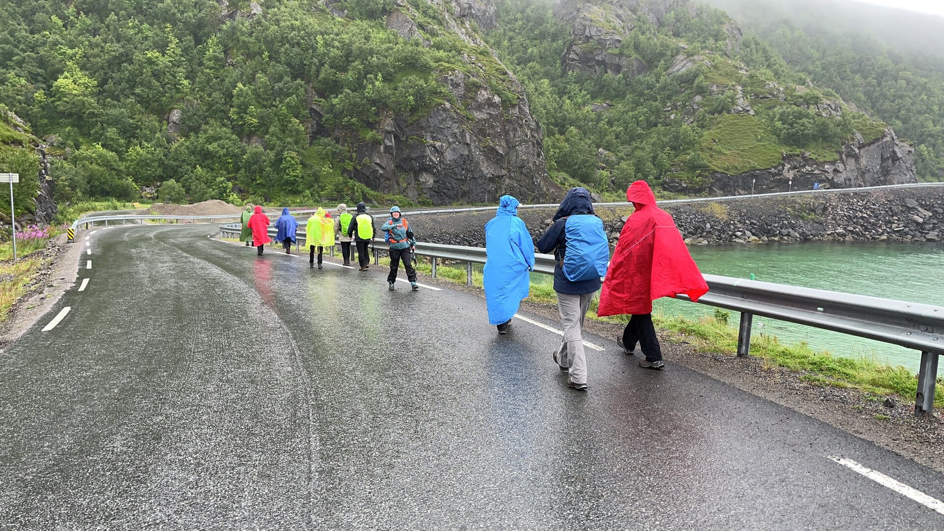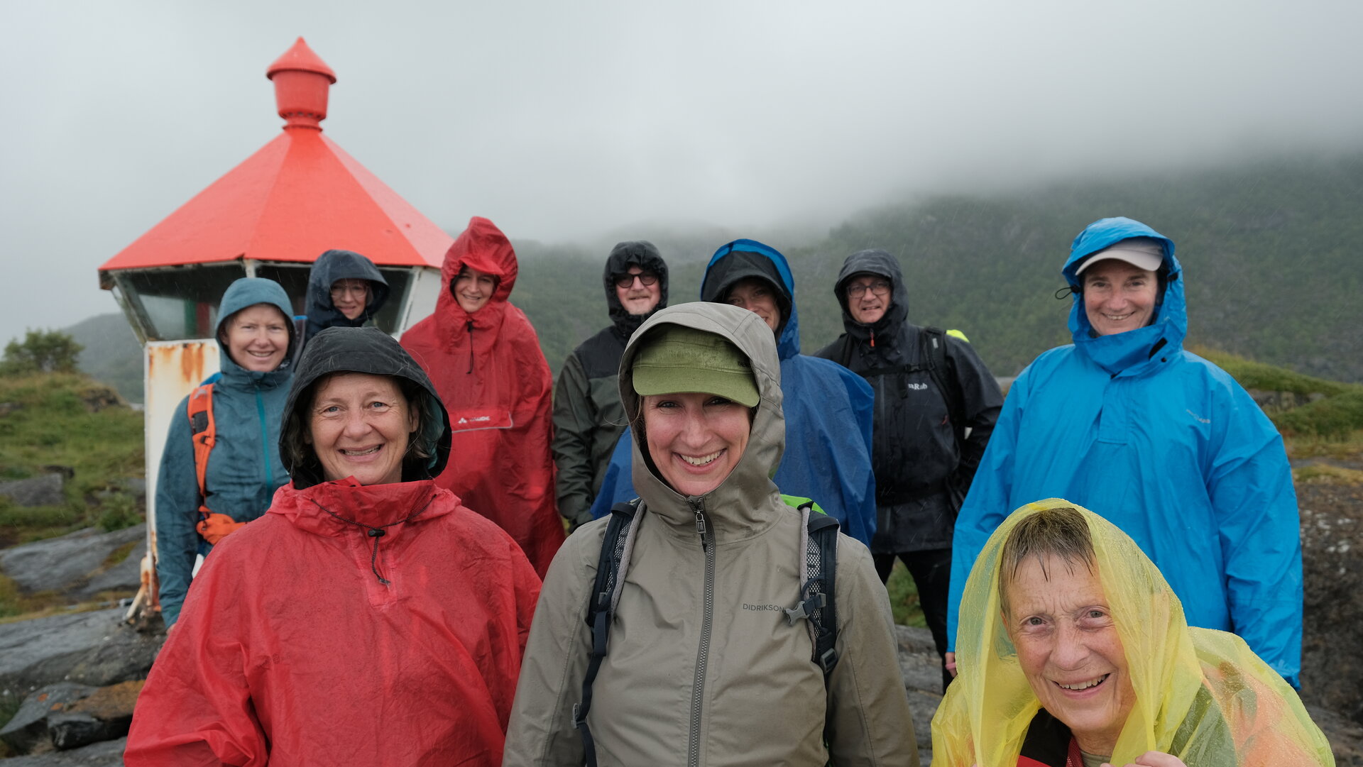 Hält unsere Reiseleiterin aber nicht davon ab, uns in die Regenklamotten und dann auf die heutige Tour zu treiben. Erst zum benachbarten Leuchtturm (die Schweizerin in unseren Reihen sagte: „eher ein Turmli“) und anschließend auf den „Hausberg“. War aber im Vergleich zu den letzten Touren moderat, dafür jedoch sehr nass …