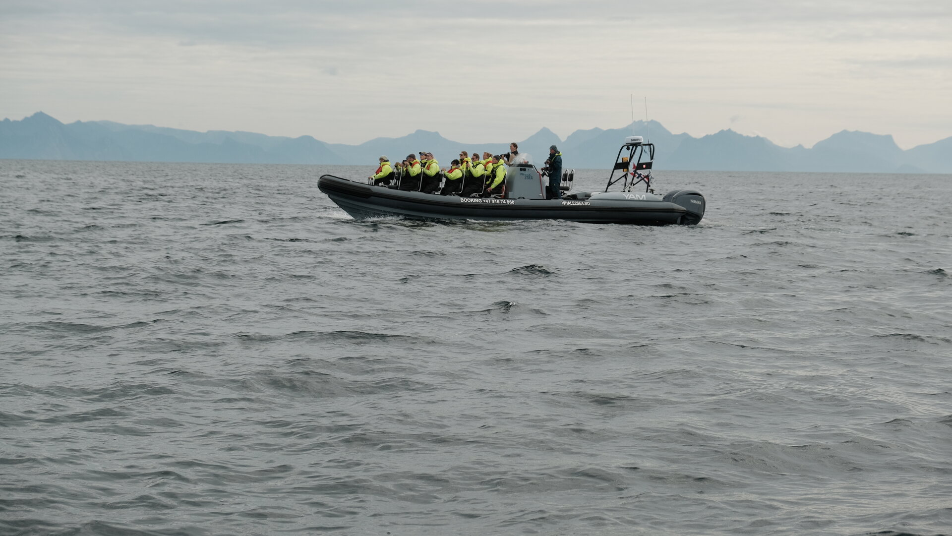 Statt wie ursprünglich vorgesehen mit einem grösseren Boot ging es ausnahmsweise mit sogenannten RIB-Boats auf die Tour, da die großen Boote wohl ausgefallen waren. Was man sich unter RIB-Boats vorstellen kann, ist auf den Fotos zu sehen. Dazu gehört natürlich amtliche Bekleidung in Form von Thermoanzügen.