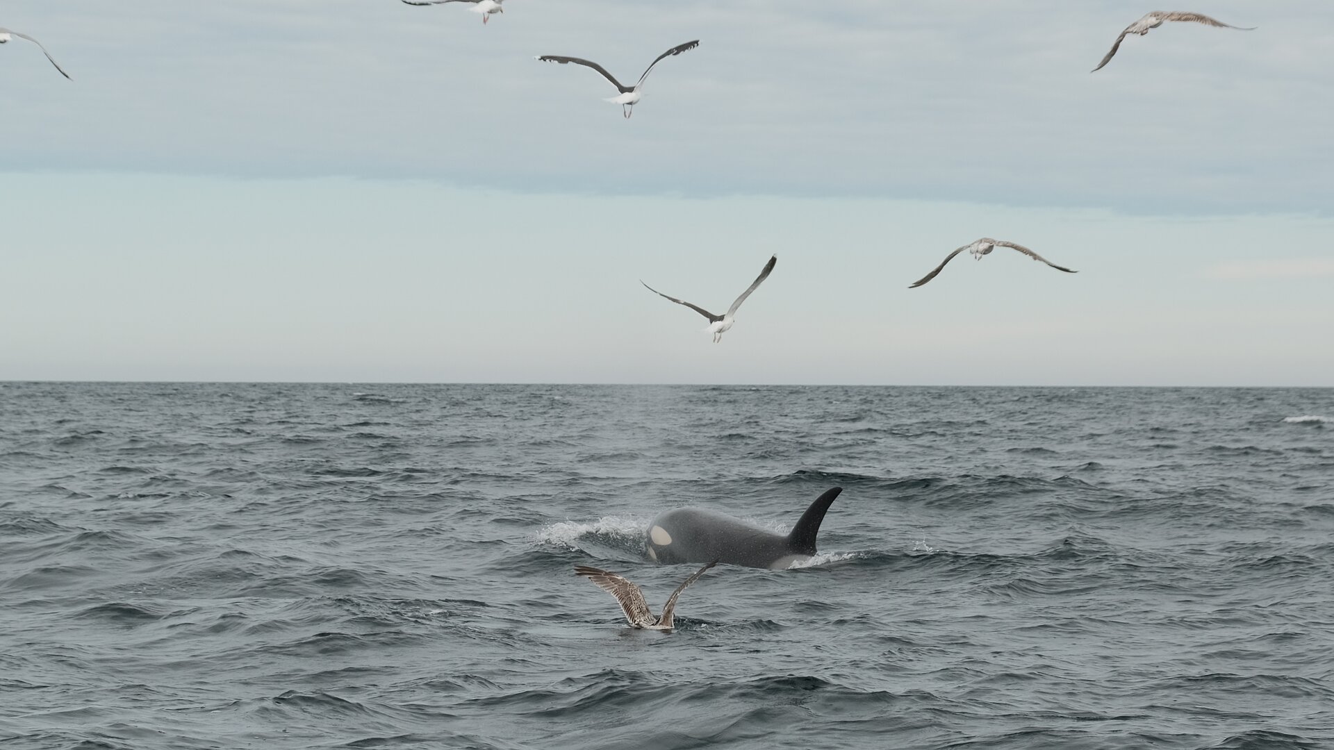 Und dann waren schon nach außergewöhnlich kurzer Fahrzeit die ersten Orcas zu sehen … fantastisch!